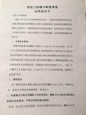 下午,律师前往息县看守所会见邢望力后并整理书面法律意见书:嫌疑人不符合指控罪名,不应批捕,应当取保。