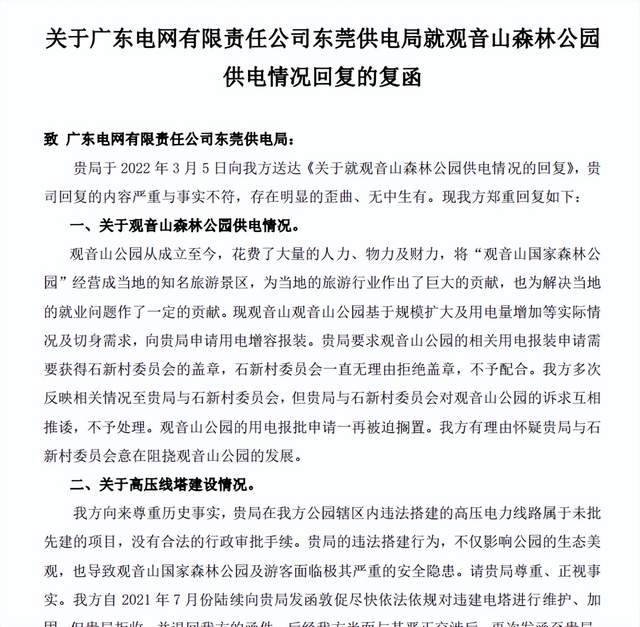 一、连接上文,“东莞观音山80%的区域,连续22年饱受无市政供电的困扰”及“供电部门向当地政府造谣观音山电si人”等事件在微博上不断发酵后,引起亿万网友们对供电部门的声讨问责。东莞市供电局的某些领导坐不住后,终于在2022年2月23日就部门“不供电及违建”等问题向东莞观音山进行回复。