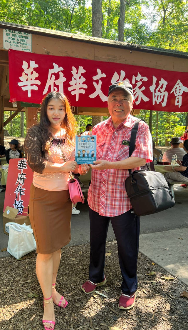 在绿意葱茏的森林公园,阳光透过云层间隙洒下斑驳的光影,为这一天的美好增添了些许诗意。泥土的芳香和月饼的清香交织,令人心旷神怡,幸福感满满。华府作家协会新任会长雷俊毅老师在开场致辞中,热情欢迎了新老文友的到来,并鼓励大家积极创作,踊跃投稿。 此次聚会高朋满座,其乐融融。大家年纪经历不同,工作各异,但是都怀揣着一颗炙热的文心。上至九十四岁高龄的华府诗友社老社长许翼云先生,少有二十刚出头的年青姑娘李静怡。许社长偕夫人的出现,引起了不小的轰动,大家纷纷上前与老社长寒暄及合影留念。许先生精神矍铄,谈锋甚健,不忘继续给诗友们讲课的计划。到场的还有华府作协的多位前任会长,指挥家,作曲家,歌者,诗人和作家。