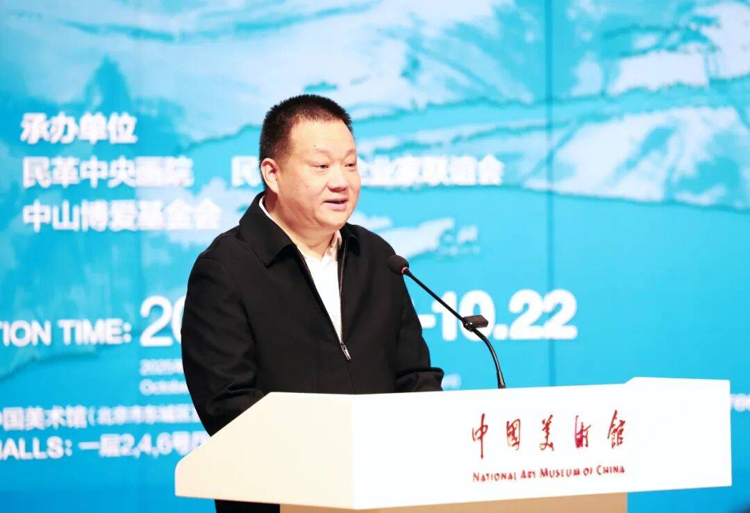何报翔在讲话中指出,长江的保护和发展,是习近平总书记念兹在兹的牵挂。自2021年开始,受中共中央委托,各民主党派中央、无党派人士围绕长江生态环境保护,开展为期5年的民主监督工作。今年是“绿水青山就是金山银山”理念提出20周年,也是长江生态环境保护民主监督工作的收官之年。我们举办以“共绘一江清水”为主题的书画作品展,邀请民革30个省级组织共同参与创作长卷《新长江万里图》,正是希望讲好长江流域生态环境保护和高质量发展的生动故事,展现民主党派在参与长江生态环境保护民主监督工作实践中的积极作为。他强调,要深刻把握文艺工作的正确方向,自觉把艺术追求融入国家建设事业之中,创作出更多无愧于我们这个伟大时代、伟大国家、伟大民族的优秀作品,为强国建设、民族复兴添砖加瓦、贡献出力。