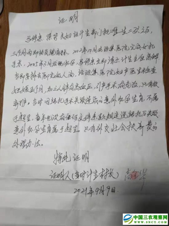 马修来觉得自己特别冤枉,所谓的“超生一孩”并不是他们夫妻造成的,当年按照规定做了结扎手术,是因为结扎手术失败意外怀孕,当发现后胎儿已经五个月不能引产,才生了这个孩子。如追究责任,也是计生部门结扎失败责任,不属于我的责任。当年计生表中注明结扎手术完成,绝育手术失败之后生育,是卫计生政策哪一条呢?