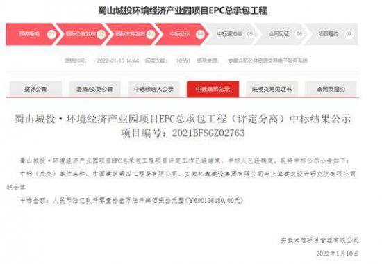 中建四局的中标公示(截图)