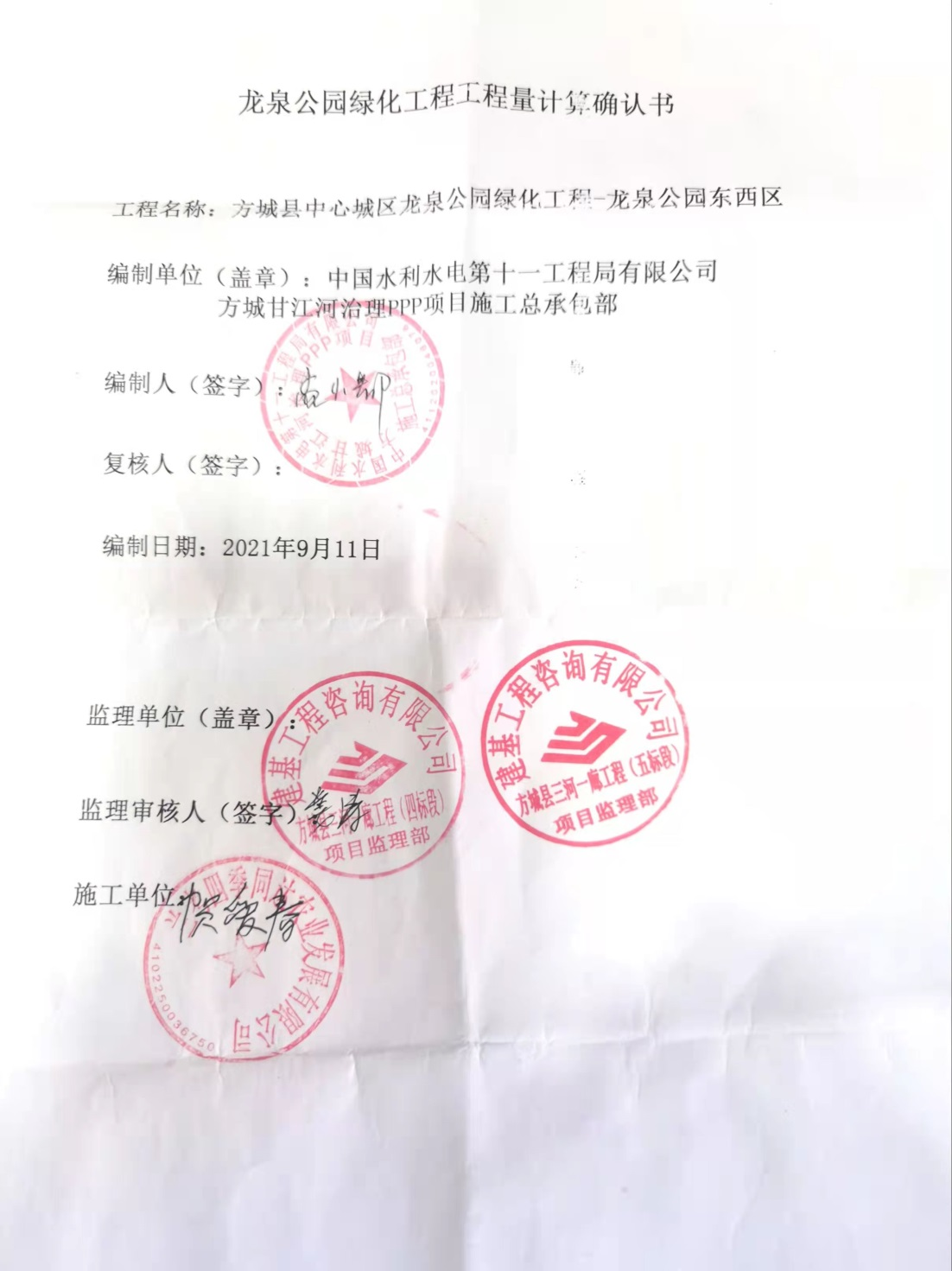 2018年10月底我们正式进场施工,直到今年7月1日龙泉公园正式开园,两年零九个月的时间内,两个亿的工程款只给我们结算了7300万(含材料款),其余费用全部是我们公司筹借垫付。