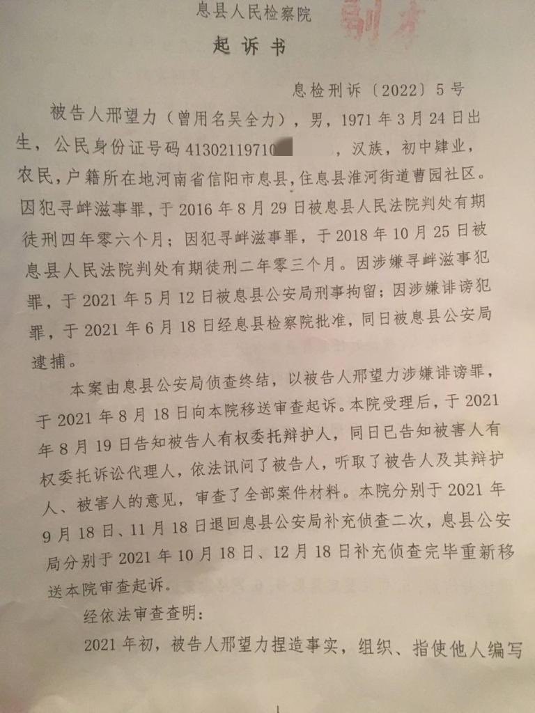 河南省信阳维权人士邢望力涉嫌“诽谤罪”一案庭审纪实