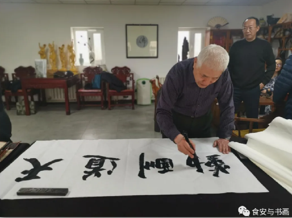 座谈结束后,大家挥毫泼墨,多以榜书形式抒发情感,边创作交流,边相互指导点评。度过了一个即有政治意义,又有文化氛围的轻松愉快的下午。(王炳强、苑建国)