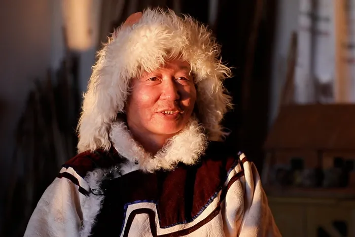铁木尔加甫·卡汗别力克讲解古老毛皮滑雪板的制作技艺