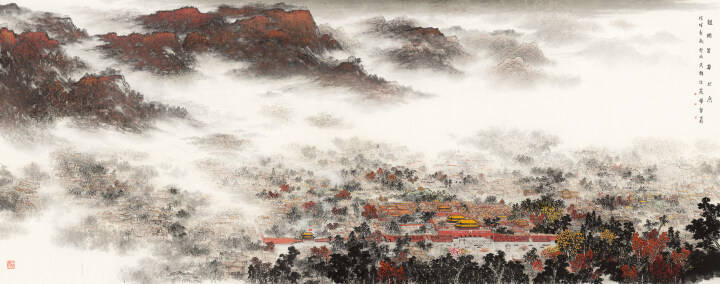 孟祥宁回顾了杨留义近年来在中国文联、中国美术馆等多地举办展览的盛况及影响,他表示,画家杨留义在继承传统山水画的基础上,对城市风貌进行了创造性艺术描绘,集中反映了当代社会人与城市、人与自然、城市与自然之间的新关系和新平衡。此次展出的作品笔墨浑厚华滋、气势苍劲磅礴、意境高古渊雅,让观者身临其境的同时,也能感受到新时代城市山水画的色彩与魅力。