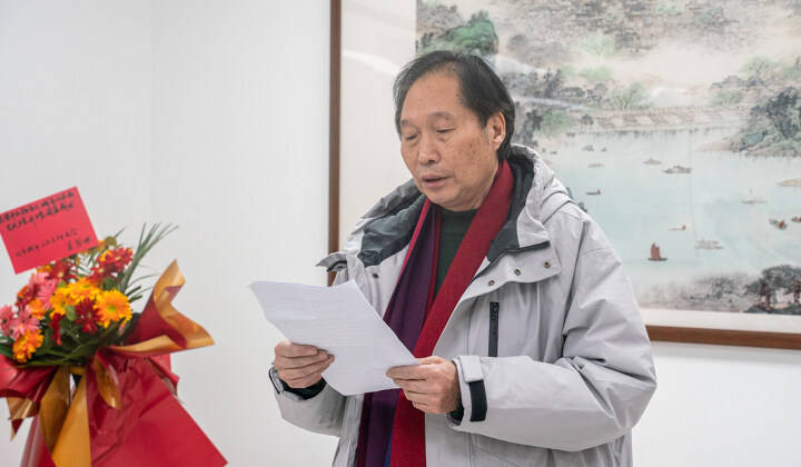 著名城市山水画家、北京城市山水画研究会会长杨留义在揭牌仪式上致答谢词