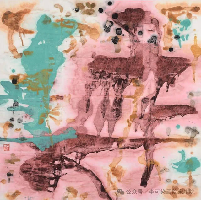 日本墨象派在日本也称为前卫派。所谓前卫,就是指其用意重在对本领域固有边界的冲击与跨越。但日本墨象派分两类,一类是把汉字作为前置规定性,对书写汉字这个边界心存敬畏;一类是不写汉字或弱化汉字,意在借助书法元素浇自己块垒。前者以手岛右卿为领袖,后者以比田井南谷为代表。纪君因为涉足于多个艺术领域,又具周游国外博物馆的阅历,因此对书法的边界,既有坚守的一面,创作了大量具有北碑汉隶意味的作品,同时又有跨越边界的冲动,因此推出了墨象甚至彩墨作品。在我看来,他对书法固有边界的冲击更像一个顽童游戏时听从自己内心感性冲动的结果,而非出于学理上的理性选择,但客观上他却激活并融合了这些来自于他绘画、摄影,甚至他对大自然飘逸的杨柳枝条、墙壁上的屋漏痕、倒影、污渍等观察体悟所得的经验与手法,因此大大拓展和跨越了传统书法艺术的边界。他的墨象创作充满了书法性的思考,充满了对书法元素的敏感探讨,不同类型的点、疏密有别的线以及线条的不同走向和恰到好处的运用,构成了他笔下一个个很美的画面。