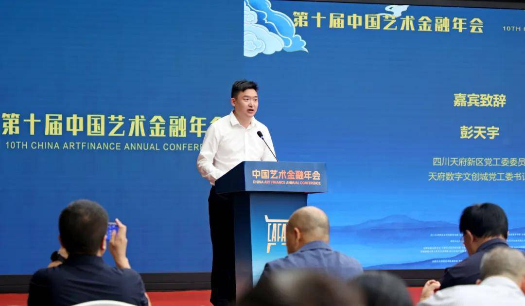 彭天宇在致辞中介绍了四川天府新区的历史沿革和发展情况。他指出,这次中国艺术金融年会在天府新区举办,是众多专家学者、行业精英汇聚一堂,共话艺术金融、共谋未来发展的业界盛会,也为天府新区推动艺术和金融、数字科技金融的发展拓宽了渠道、搭建了平台。希望以此次活动为契机,与大家深化交流合作,共同看到数字艺术资产交易路径,共同推动数字艺术产业专业化、标准化、规范化的发展,为国家文化数字化战略深入地实施贡献力量。
