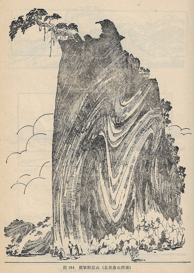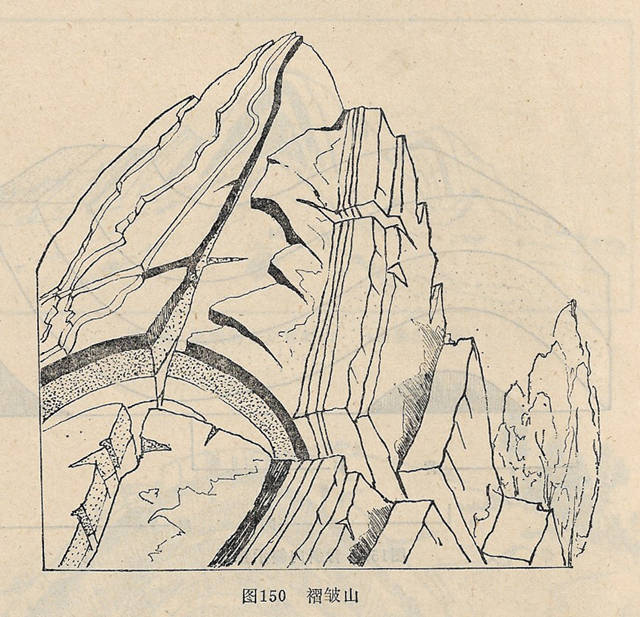 地壳运动可以把岩层挤成各式各样的弯曲。岩层被挤压形成的一个弯曲叫褶曲,系列的波状弯曲叫褶皱。褶曲的基本类型有二种:背斜和向斜。一般说来,背斜是向上拱起的弯曲,向斜是向下的弯曲。岩层受挤压变形,形态十分复杂,规模一般都很大,分布有一定的区域性、方向性。我国的天山、阿尔泰山、祁连山、喜马拉雅山等大山脉都是褶皱断块山。