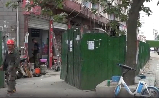 二、行为违法、5月13日,未张贴任何告知,拆迁指挥部指挥近百人以环保为借口强行拉4米高围挡,不顾经营者的生活和正常经营,停电停水。