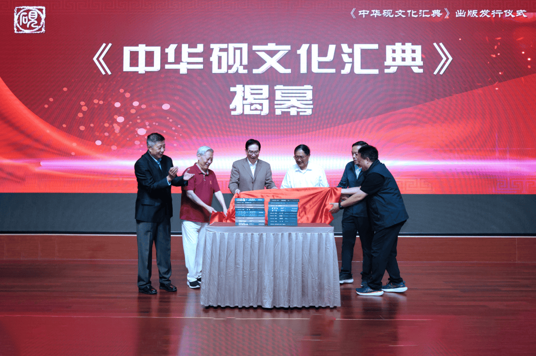 吴双战司令员、中华炎黄文化研究会李玉赋会长、刘红军副司令员、中国文房四宝协会陈建国会长,中国工艺美术学会才大颖理事长、董方军会长为《中华砚文化汇典》揭幕