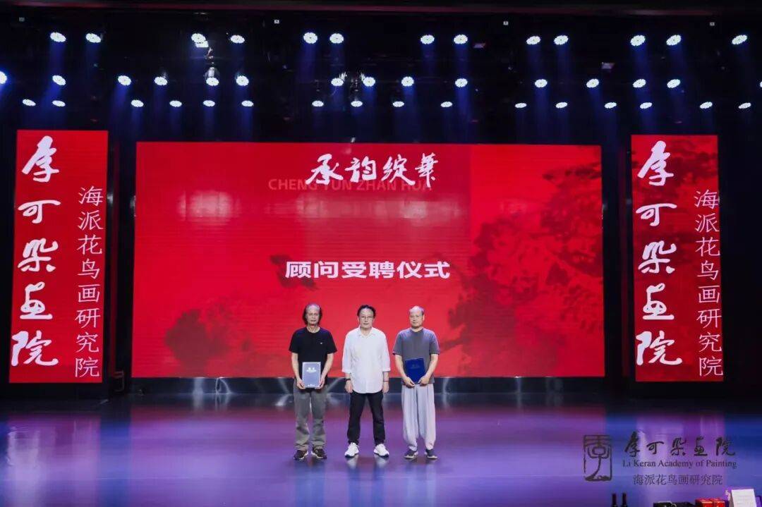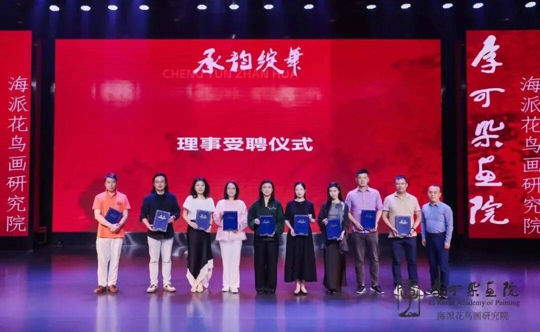 开幕仪式后,现场举行了李可染画院海派花鸟画研究院颁发理事证书聘任仪式和揭牌仪式。在理事受聘仪式中,泰和泰(上海)律师事务所高级合伙人王振华为白天悦、陈青莉、李敏捷、李元凯、钮文靖、王旭峰、杨文文、张凯发、章亚华颁发聘书,理事代表王振华发言;在顾问受聘仪式中,宁夏美术家协会第五、六、七届副主席,中国现代国画研究院副院长倪世华为蒋英坚和许华新颁发聘书,顾问代表倪世华发言;在副院长受聘仪式中,李可染画院海派花鸟画研究院副院长张家健为王凡飞(熊绍兵代领)颁发聘书,副院长张家健代表发言。