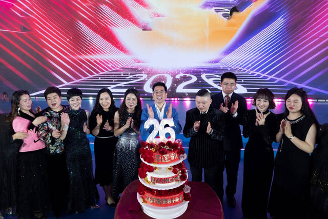 随后举行的百莲凯2026年度出征仪式庄严而盛大。百莲凯高管与核心加盟商代表共同宣誓,铿锵有力的誓言回荡在整个会场,象征着百莲凯在新一年里勇毅前行、再创辉煌的坚定决心。而激动人心的切生日蛋糕环节,更是将现场氛围推向极致。百莲凯高管、特约嘉宾代表及加盟商代表共同上台,在全场观众的倒计时声中切开象征品牌26周岁的生日蛋糕,甜蜜的蛋糕承载着美好的祝福,也寓意着百莲凯未来的发展将更加圆满顺遂。