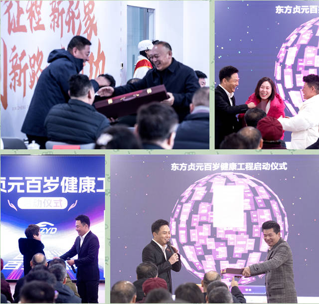 上午 11 时整,全场灯光聚焦启动台。企业宣传片生动展现了东方贞元在健康产业的深耕历程与宏伟蓝图,在影片落幕之际,刘力源董事长、于滨书记、东方贞元百岁健康工程项目发起人梁宗宝、大客户部经理陈锋等领导嘉宾共同走上启动台,将象征健康源泉的清水注入启动装置。瞬间,“东方贞元百岁健康工程正式启动” 的字样熠熠生辉,全场响起长时间热烈掌声,标志着工程从蓝图正式迈向实践。